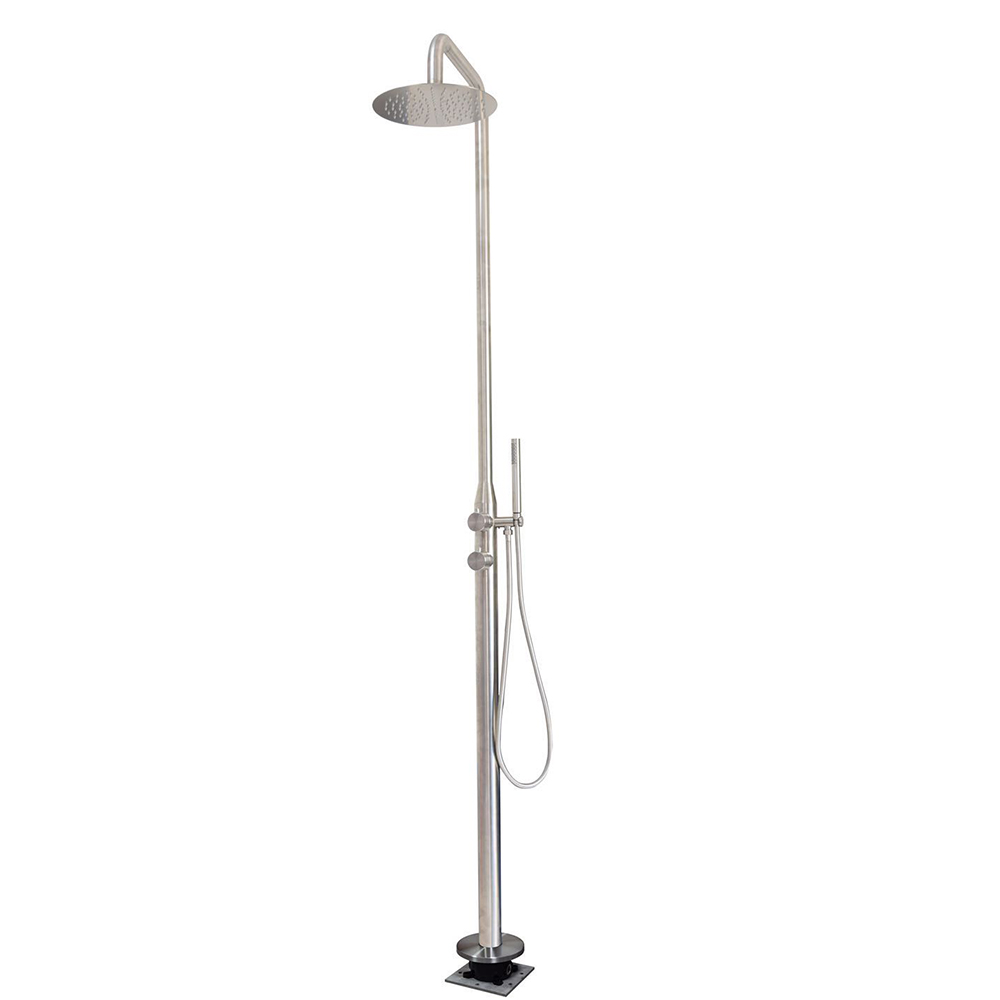 Vous pouvez désormais profiter de luxueuses douches d’eau chaude extérieures avec notre ensemble de douche à effet pluie en acier inoxydable.